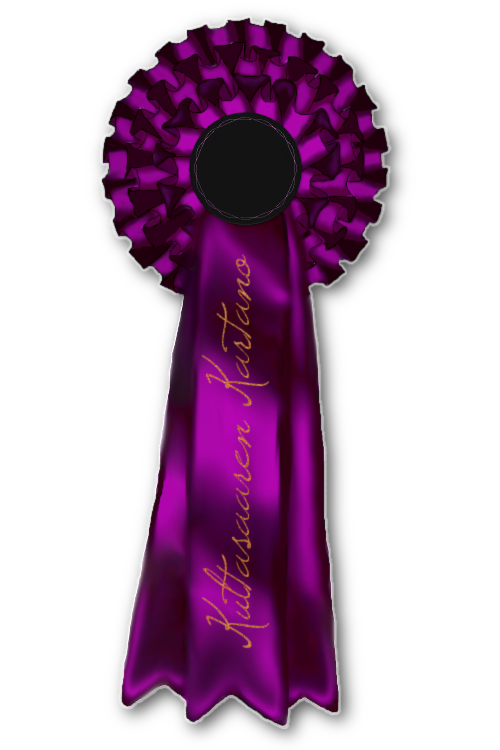 | ie. Myrskylän Pullava m, 156cm Ch, KTK-III, KRJ-I, ERJ-I, SLA-I, SV-I |