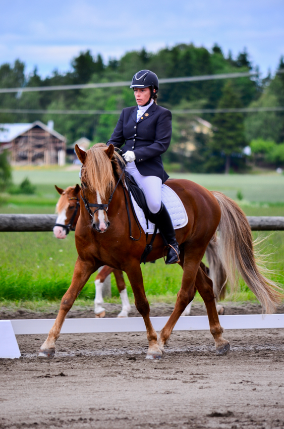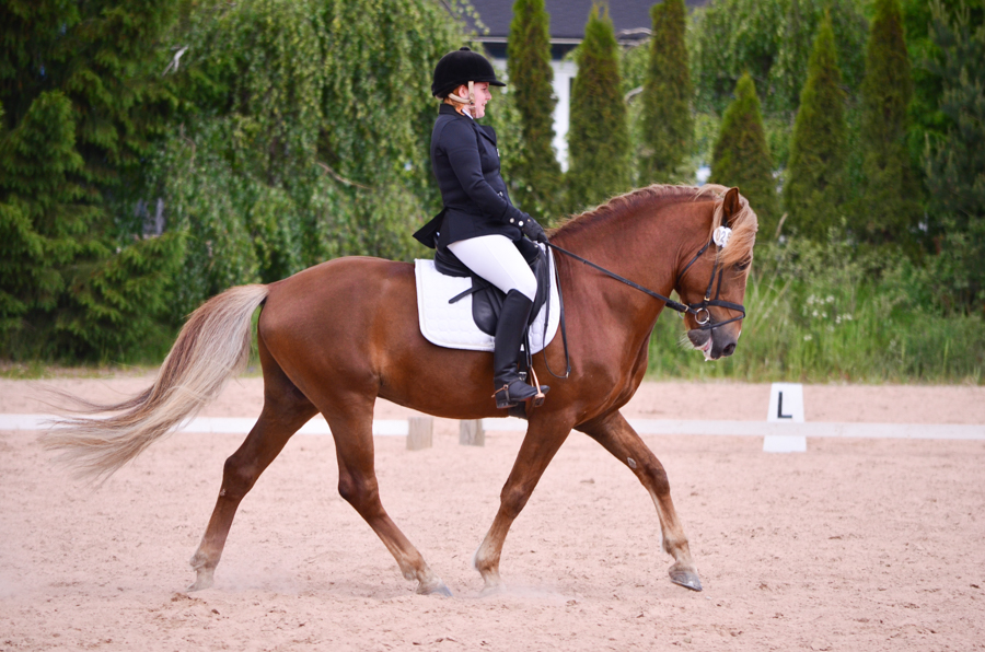 Kouluratsuna Tuukka on toisinaan liiankin hieno vaativan B:n radoille suurine liikkeineen ja kaartuvine kauloineen, mutta olen antanut sen machoilla kaikessa rauhassa ja nauttinut itse vain kyydistä. Tuukalla on suuret, lennokkaat askeleet, ja orin kyydissä tuntee helposti itsensäkin maailmanluokan ratsastajaksi. Se on varsinainen kolikon päällä kääntyjä. Tuukka pärjäisi varmasti jopa vaativan A:n radoilla, mutta koska päädyimme kisaamaan sen kanssa kahta lajia, ajattelen vaativan B:n ja 90cm:n rataesteiden olevan oikein kelpo kilpailutaso.